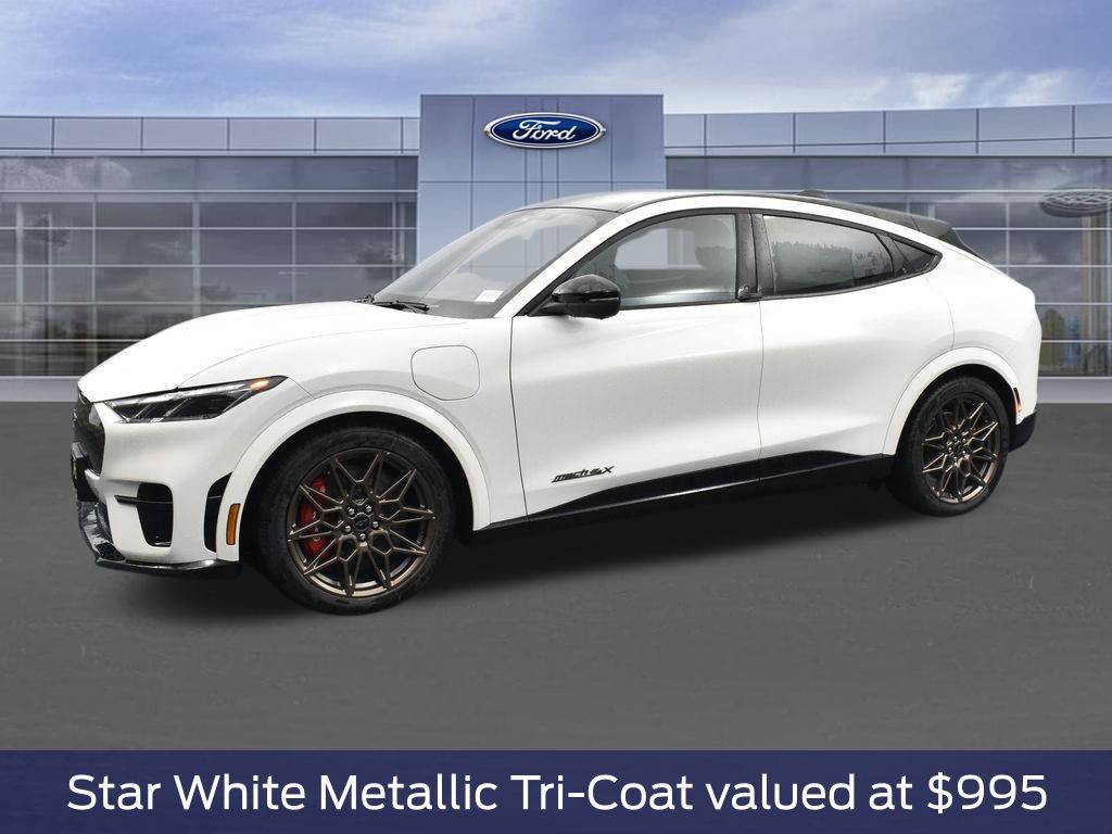 Star White Metallic Tri-Coat, Bronze Appearance Package, 20 Inch Sinister Bronze Painted Wheels, Bronze Mesh Front Grille Shield, Mach-E 4x Door Badges and Rear GT Badge, Equipment Group 400A Standard Package, Single Speed Transmission, Heated Perforated ActiveX Performance Seats, Dual Motor EAWD (Rear/Upgraded Front), B&O Sound System by Bang and Olufsen, SiriusXM with 360L, SYNC 4A with Enhanced Voice Recognition, 245/45R20 Summer Tires, Mustang Mach-E GT Performance Upgrade, Panoramic Fixed-Glass Roof, Mobile Power Cord (120V/240V), Performance Gray.
