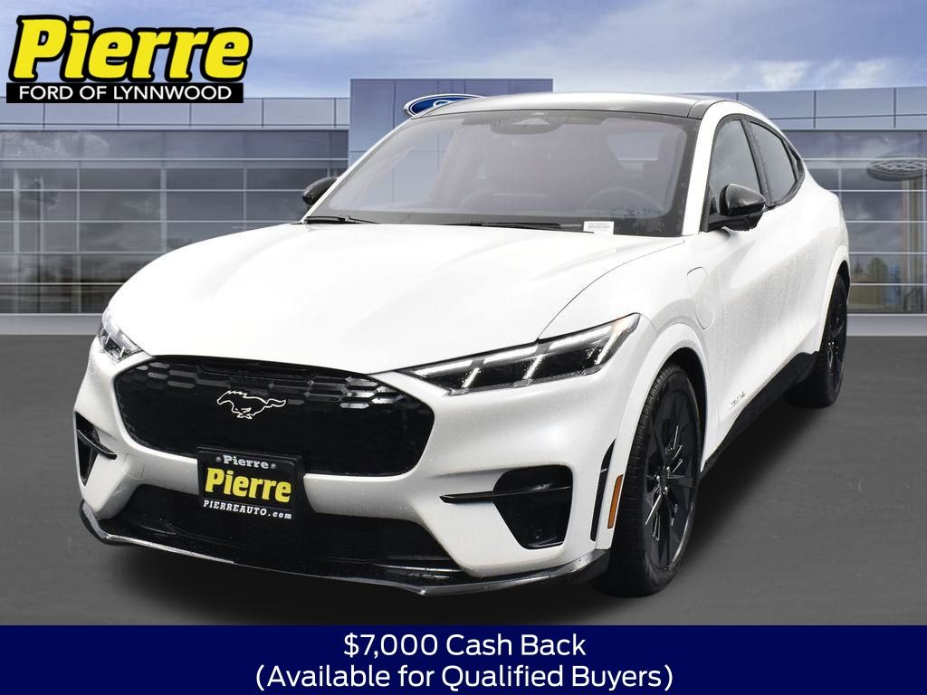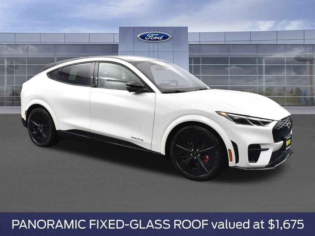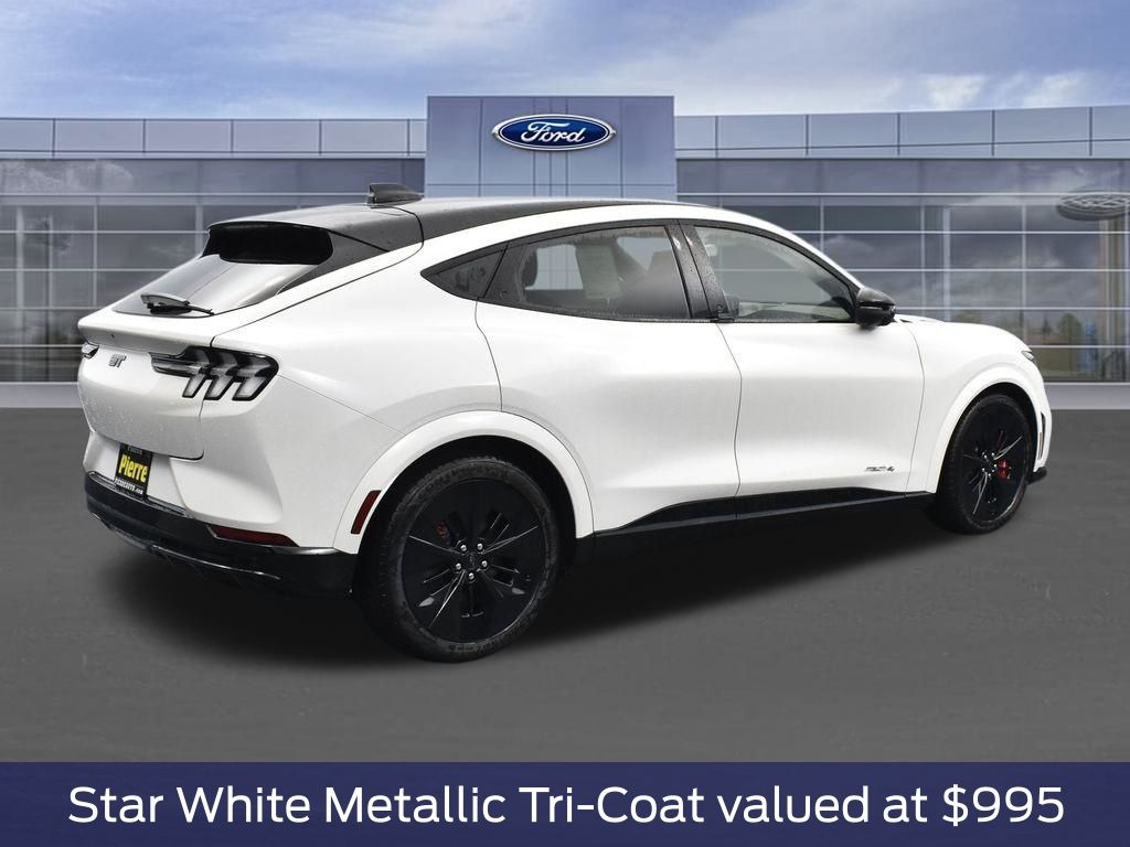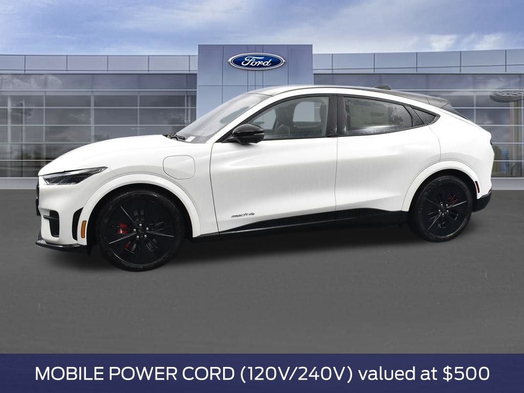 Star White Metallic Tri-Coat, Equipment Group 400A Standard Package, Single Speed Transmission, Heated Perforated ActiveX Performance Seats, Dual Motor EAWD (Rear/Upgraded Front), B&O Sound System by Bang and Olufsen, SiriusXM with 360L, SYNC 4A with Enhanced Voice Recognition, 245/45R20 Summer Tires, 20" Machined Face Aluminum Wheels, Mustang Mach-E GT Performance Upgrade, Panoramic Fixed-Glass Roof, Mobile Power Cord (120V/240V), Performance Gray.