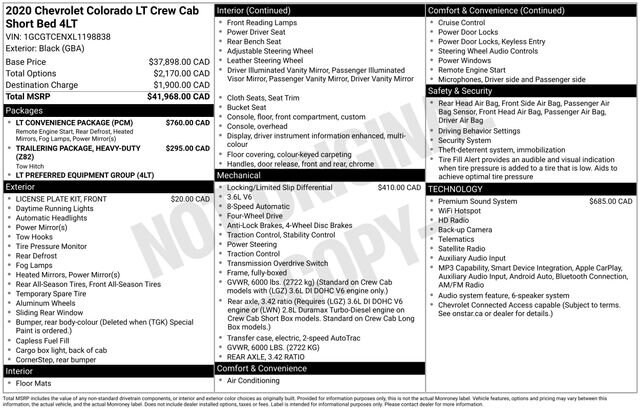 Clean CARFAX!Discover the versatile and capable 2020 Chevrolet Colorado LT, a midsize truck that's ready to take on any adventure. With its powerful V6 engine, 4-wheel drive, and impressive fuel efficiency, this Colorado delivers the performance and capability you need, whether you're hauling heavy loads, navigating rough terrain, or just cruising down the highway.- Remote Vehicle Starter System- Bose Premium 7-Speaker Audio System- Rear-Window Electric Defogger- Power driver seat- Steering wheel mounted audio controlsBeyond its impressive mechanical prowess, the Colorado LT offers a wealth of premium features to enhance your driving experience. Stay connected with the Chevrolet Infotainment 3 Plus system, complete with Apple CarPlay, SiriusXM Radio, and HD Radio. Enjoy the convenience of remote keyless entry, power windows, and a power-adjustable driver's seat. And with thoughtful touches like the rear-window defogger and front fog lamps, you'll be ready to tackle any weather conditions with confidence.Safety is also a top priority in the Colorado LT, with advanced features like Electronic Stability Control, Traction Control, and a comprehensive airbag system to help protect you and your passengers. The Rear Vision Camera makes it easy to maneuver in tight spaces, while the Tire Pressure Monitoring System helps you maintain optimal performance.Whether you're looking for a capable work truck, a versatile adventure vehicle, or a comfortable daily driver, the 2020 Chevrolet Colorado LT has the features and capabilities to exceed your expectations. Experience the perfect blend of power, utility, and technology by scheduling a test drive at our dealership today.All vehicles are one of each. All Pre-Owned or Certified vehicles are Used. The offering price of this vehicle is conditioned on a negotiated waiver of implied warranties if the Buyers Guide on the vehicle is AS IS-NO DEALER WARRANTY. If the Buyers Guide on the vehicle is IMPLIED WARRANTIES ONLY, the offering price includes implied warranties. A dealer documentary service fee of up to $200 may be added to the sale price or capitalized cost. All financing is subject to credit approval. Prices exclude tax, title, and license and are valid for Washington residents only. All transactions are negotiable including price, trade allowance, interest rate (of which the dealer may retain a portion), term, and documentary service fee. Any agreement is subject to execution of contract documents. Every reasonable effort is made to ensure the accuracy of this data. Please verify any information in question with a dealership sales representative.