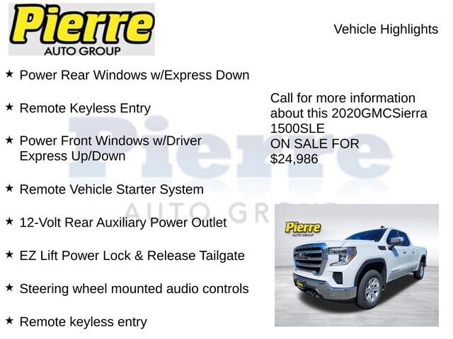 Discover the perfect balance of power, capability, and comfort in this 2020 GMC Sierra 1500 SLE. Schedule a test drive today and experience the difference for yourself.