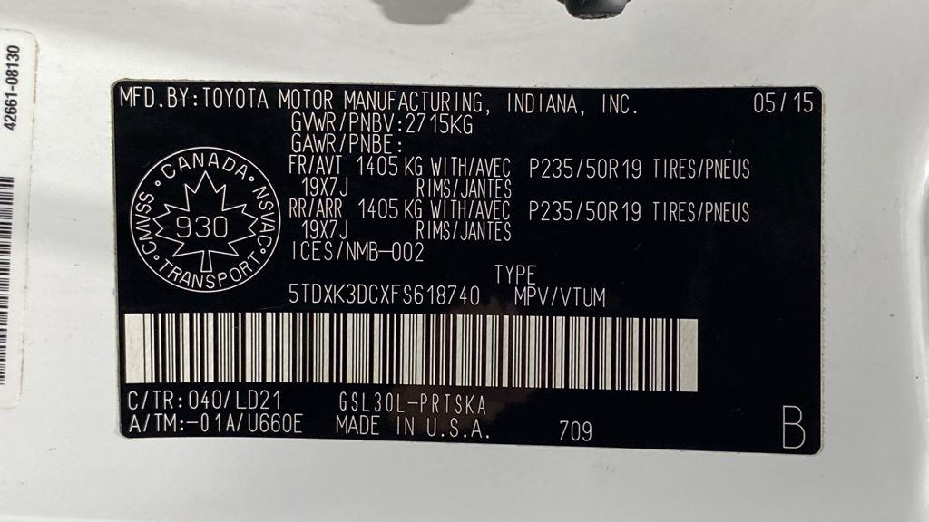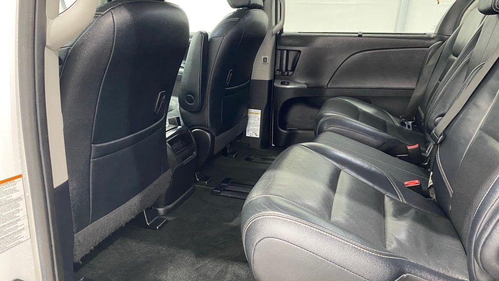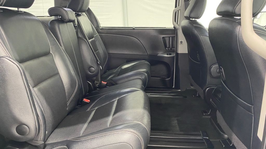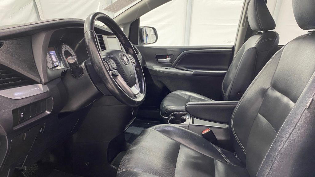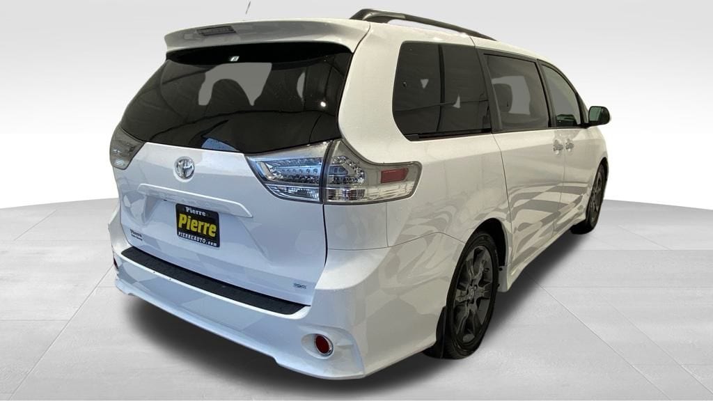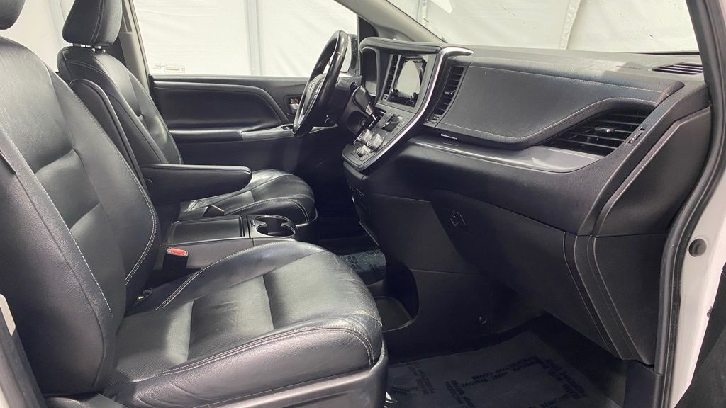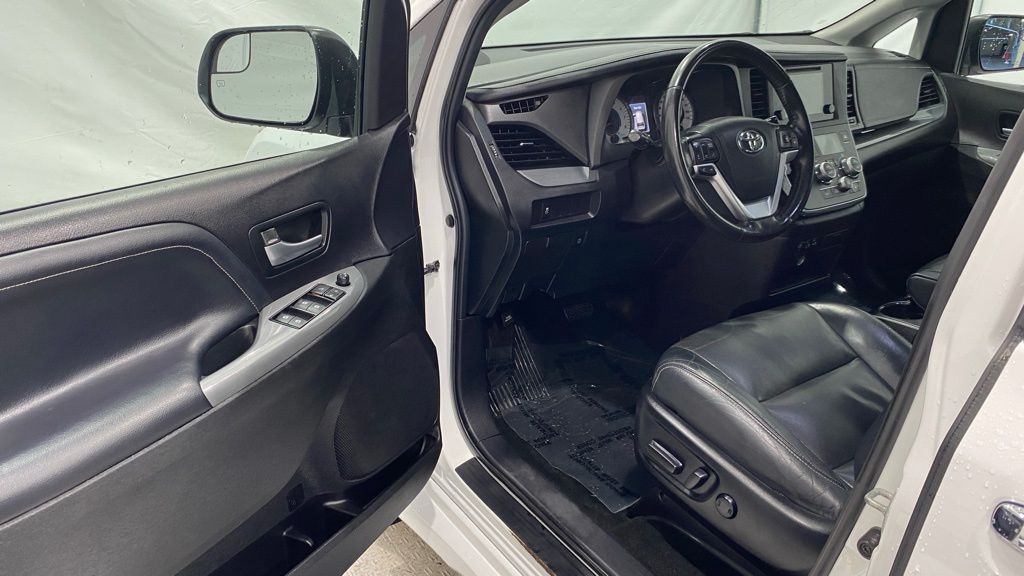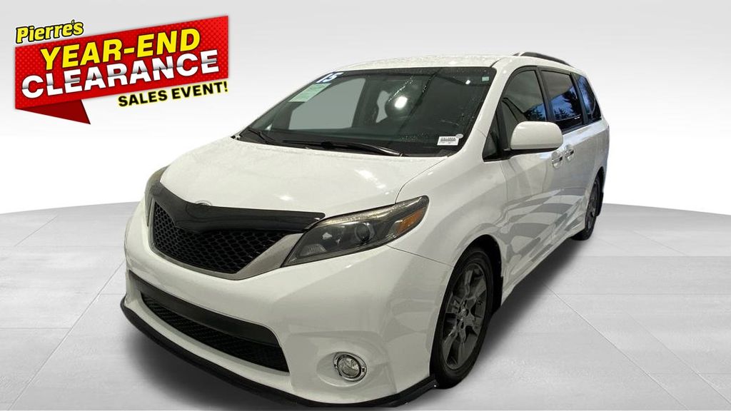 2015 Toyota Sienna SE 8-Passenger FWD ** 3.5L V6 with 6-speed automatic ** Sport-tuned suspension and SE sport styling (mesh grille, unique bumpers, fog lights) ** 8-passenger seating with removable 2nd-row center seat and 60/40 split 3rd row ** Power sliding doors, power driver seat, tri-zone automatic climate control, rear air vents ** Touchscreen audio w/ Bluetooth, USB/AUX, steering wheel controls ** Backup camera, keyless entry, cruise control, power windows/locks ** 17" alloy wheels, roof rails, privacy glass, rear spoiler, and SE interior accents.