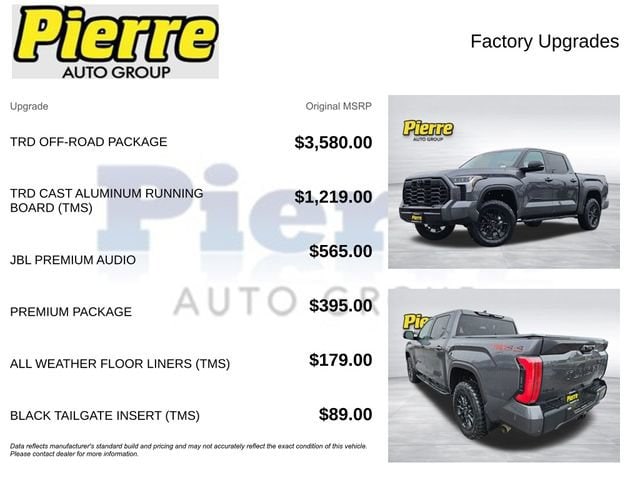 - TRD OFF-ROAD PACKAGE: Includes 20 Black Alloy Wheels, Front & Rear Mud Guards, and Multi-Terrain Back Monitor