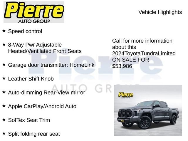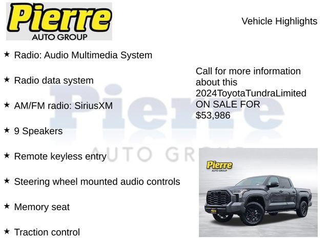 Experience the unparalleled capability, comfort, and style of the 2024 Toyota Tundra Limited. Schedule a test drive today and discover why this truck is the perfect companion for your next adventure.
