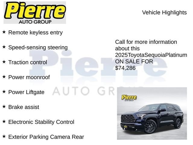 Backed by Toyota's renowned reputation for reliability and craftsmanship, the Sequoia Platinum is a true testament to the brand's commitment to excellence. Experience the pinnacle of modern SUV design and engineering by scheduling a test drive today.